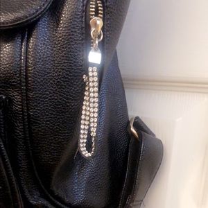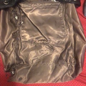 Black backpack some scratches on the strap front side and back side is clear ripped inside pocket