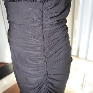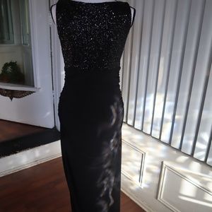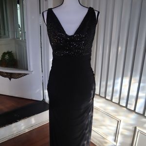 V- neck ( cowl neck ) shaped sequin black long gown, great for any occasion.
