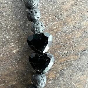 Gently used condition - may have signs of wear/tarnish. Looks like lava rock but not 100% certain. Cool edgy versatile unique piece that can go from day to night.