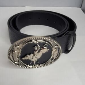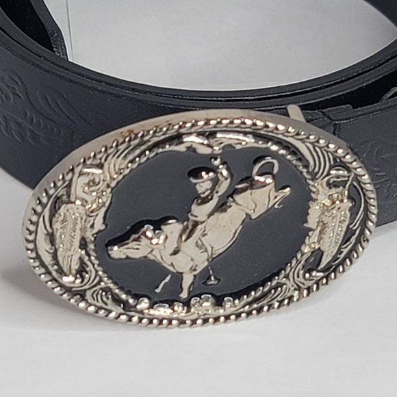 Black belt XXL Geniune bonded embossed leather Rodeo buckle Bull rider Metal