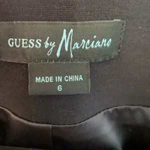 Marciano black blazer, hip length, faux leather sleeves and detail on a size. Size 6. Total length 21 inch . Good condition