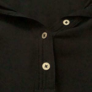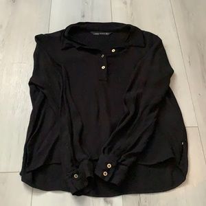 Gorgeous black blouse, gold buttons add a chic touch. Only thing one button fell off one sleeve. Picture is included