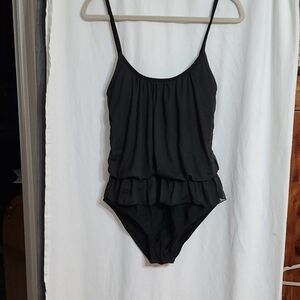 Black blouson layered swimsuit. Unbranded. Sheer overlay. Padded bra. Adjustable straps. Pre-owned, great condition. Size S(armpit to armpit approximately 17 inches. Length approximately 30 inches)