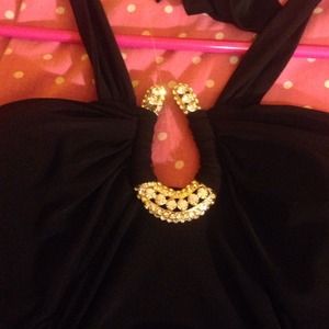 Black silky body con dress, ties around the neck. Size small only worn once. Cute dress if you're going out!