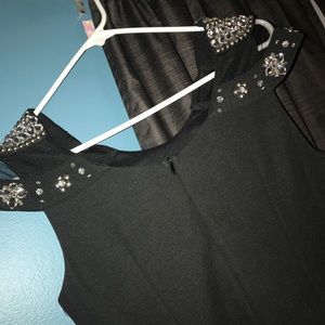 Very flattering black dress with embellished shoulders. Never worn, has tags. Perfect for homecoming!