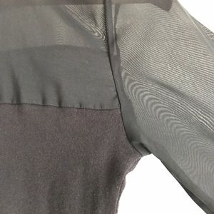Black bodycon dress with long sheer sleeves and crew neck. Cotton/modal body with polyester sleeves. By Jonathan Saunders for Target