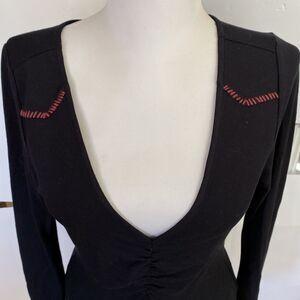 Black bodysuit scrunched front wine color stitching stretchy brand new