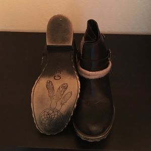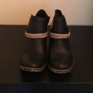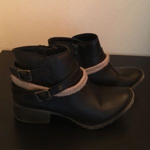 Black booties with rope and buckles. Super cute, only worn twice. Small heal, inside zipper.