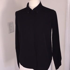 Black button down. Smooth and light fabric.
