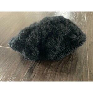 Hand knit hat by Nirvanna design. Black with hard front rim and strapped design that is held by a button on each side. Has a fleece lining. One size fits most. Hand knit in Nepal.