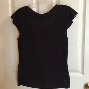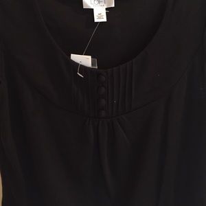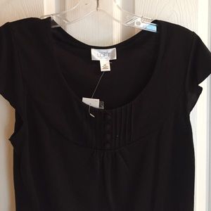 This is a very soft black shirt with cap sleeves. It has cute buttons down the front. It is new with tags.