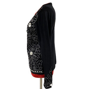 Black cardigan sweater lace applique pearl beadwork embellishment dressy size M