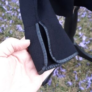 Black cardigan no buttons with contrast piping. Knitted in Taiwan. Wrists have open detail. Beautiful to touch.