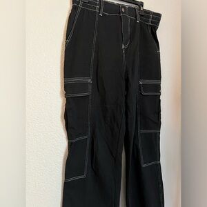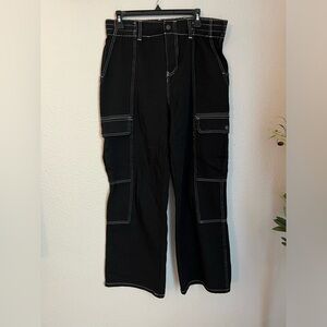 Black cargo pants with white stitching 100% cotton