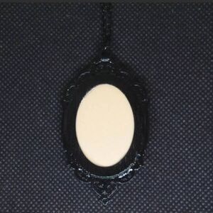 Center stone is 40x30mm- a STUNNING seemingly carved 3D recessed cameo is set in a Black Enamel plated very detailed Victorian/Goth style Pendant-- Size 3" x 1.5"