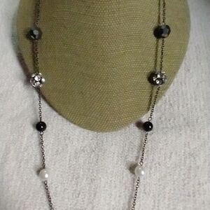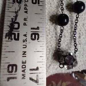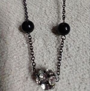 Black chain beads Aurora borealis rhinestone faux pearl necklace