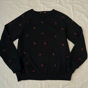 black cherry embroidery, cotton blend sweater, crew neck, lightweight knit, dark aesthetic, cozy knit, casual layering, gothic style, minimal print