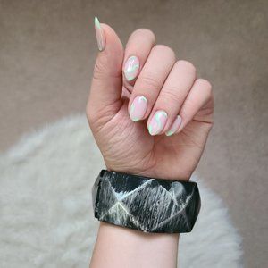 Streaked gray, sikver and metallic lines along bracelet for a very unique distressed design!