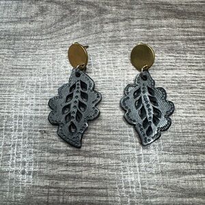 Elegant black leaf earrings with gold accents. Perfect for any occasion.