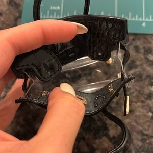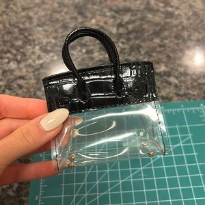 Black clear transparent Leather micro Mini Handbag keychain coin purse pouch