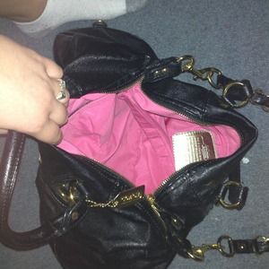 Black real coach bag with pink interior And gold chain. Removable strap. PERFECT CONDITION. For more pictures ask
