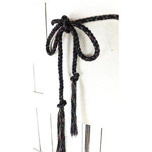 Black colorful metallic thread long woven braided rope knotted tassel chord tie belt