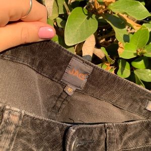 They are super comfortable, 90s style black corduroy-like pants! great with anything!