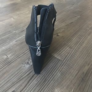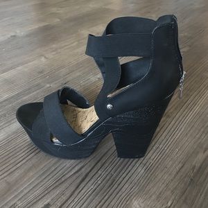 These wedges have elastic straps closer to the toes and up on top of your foot, as well as a zipper in back to keep them secure. They were lightly used (only worn to prom - first time I wore heels as a man in public!!) and are in great condition! These are soft to wear and easy on your feet. The open design keeps your feet feeling cool, rather than cramped and claustrophobic.