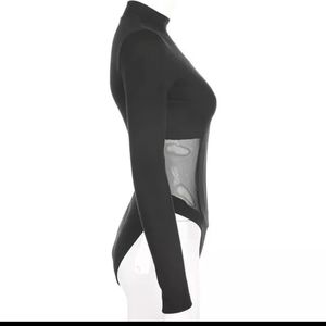 π₯π₯π₯ Black corset turtleneck bodysuit. front shear mesh with soft boning detail snap closure very soft and stretchy high cut sides. Size large. Add jeans, leggings, or pencil skirt, leather jacket and you're ready to rock. πππ