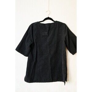 Black cotton linen blend M short sleeve top womens lagenlook oversized