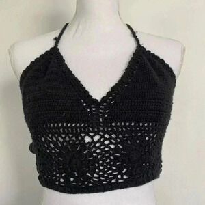 Black crochet halter top. Was missing a back string but I crocheted a new one. Adjustable neck and back.