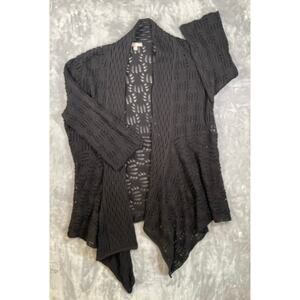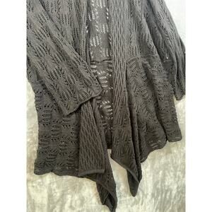 Black crochet open front tunic cardigan duster sweater cottage boho knit 3X