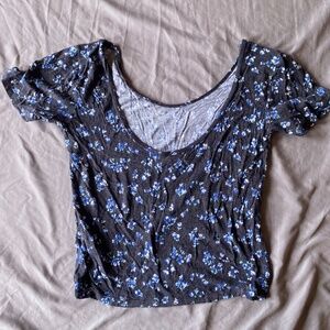 Black crop top with blue floral pattern