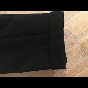Triacetate/poly ankle-length trousers with cuffed hem. DKNY but I cut the label out because it was scratching me when I wore them.