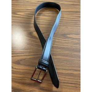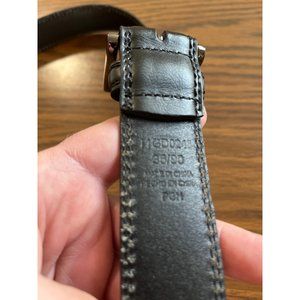 Black belt size 36. Measures 1.25” in width. Has a dark charcoal almost black buckle. Good pre-owned condition.