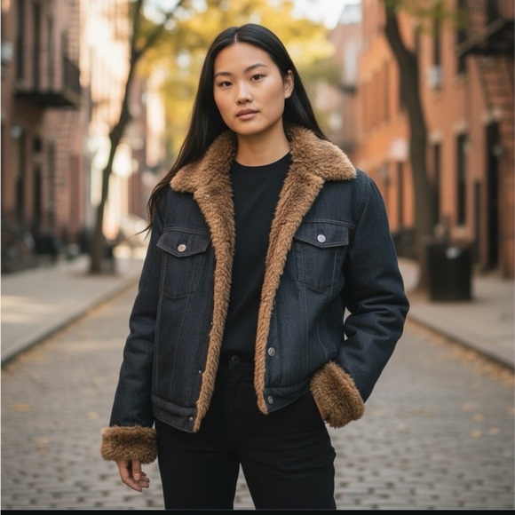 Black denim jacket with faux fur 20 inch chest to chest 24 inch shoulder down