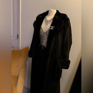 Black diamond black mink real fur size medium/Large in excellent condition paid $10k, it’s a Full Length Mink Fur Coat with Shawl Collar & Rollback Cuffs, dark brown