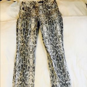 Black dotted snake print guess pants; tots fetch!