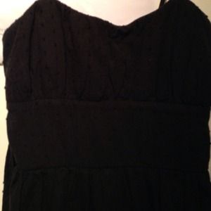 Size 5 black dress with textured dots and flowers at the bottom. Worn once sold individually as $10 but free with any other purchase.