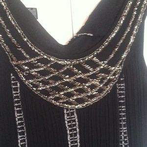 Black dress. Super light, sheer at the bottom with bling detail on neck. Sleeveless