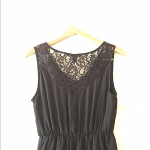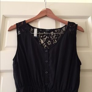 Black dress, buttons on the top and lace in the back. Elastic at the waist so it gives you a nice waistline. Never been worn- bought it but never had the occasion.