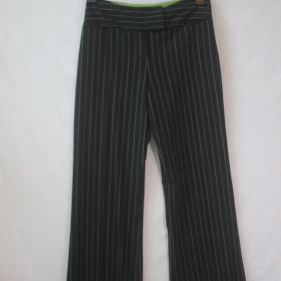 Black dress slacks with White & Kelly green pinstripe with wide pant legs.