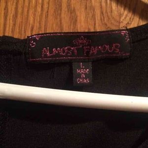 Black dress with good stud detail. Size Large (but can fit a medium. I'm a size 8 and fit perfect). Made with a spandex like material, so it's super comfortable and stretchy. Worn twice for school dances. No stains, no tears, all studs are on the dress (none missing). Zipper is perfectly fine in the back.