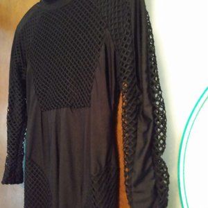 Black dress with see-through netting. The pictures are horrible but this dress is in great condition. It's very short and see-through and a comfortable and sexy dress to wear.