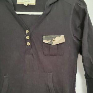 Black elbow sleeve top with hood and camo trim/accents. Great condition. No rips, stains or tears. From a smoke free and pet free home.