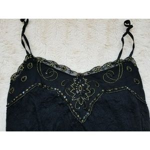 Unique black spagetti strap top with beautiful design. Adjustable straps as shown in picture #8.