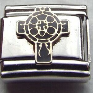 New never used 9mm stainless steel Italian charm with a black enamel Celtic cross on it. Fits all standard 9mm Italian charm bracelets,thanks for looking!