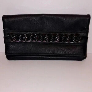 Black envelope clutch wallet with chain detail. Black lining. Please see all photos for condition.