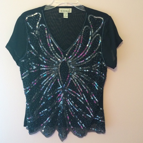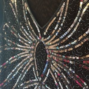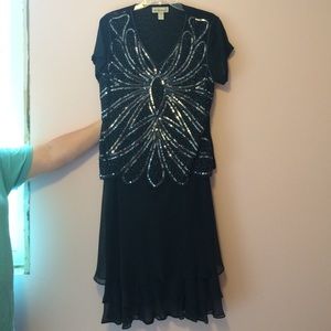 Beaded v-neck top. With layered, ruffled chiffon skirt. Perfect for a wedding or night at the theater! Worn once for a wedding. Skirt is L, top is XL