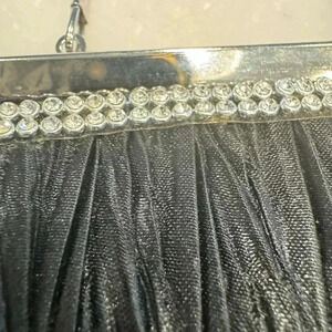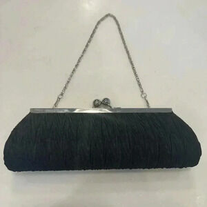 NWOT This beautiful clutch is black with silver hardware. It’s has a kiss lock close and removable chain. Perfect for formal or evening out. See photos for measurements